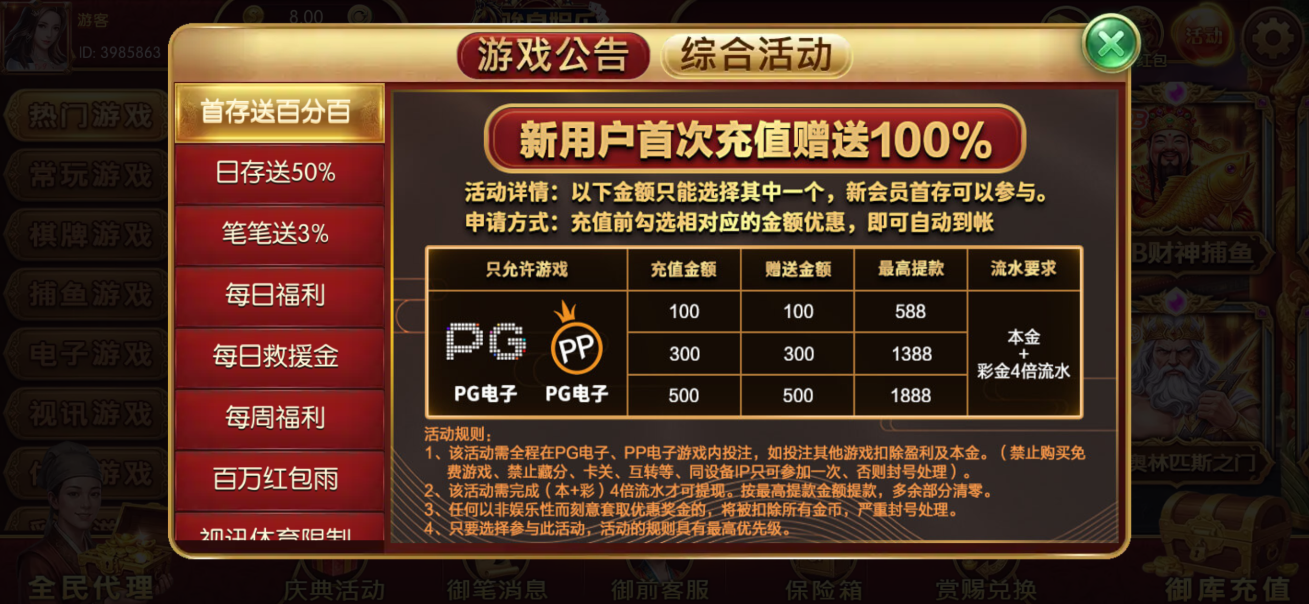 本+彩4水。流水够了多少都可以提。申请活动记得勾选✅